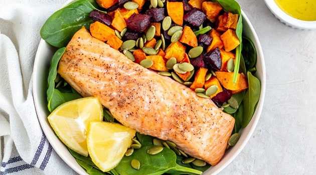 Salmon & Roasted Root Veggie Salad