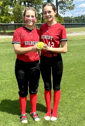 Gilbert pitcher Ainsley Minchew and catcher Carley Milton