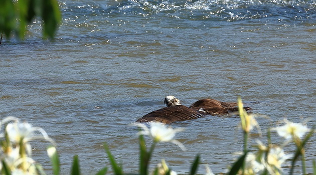 Photo: Osprey at Anthony Shoals with a fish too big to lift.