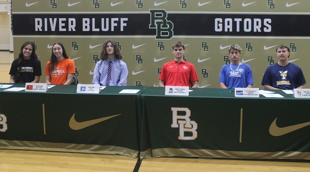 (Photo by Thomas Grant Jr.) A total of five student-athletes signed letters of intent at River Bluff High School. They were Caroline Tucker (Anderson University – volleyball), Alexis Jodie (Campbell University – volleyball), John Lane (The Citadel – track and field), Ashley Powell (North Greenville – baseball), Peyton Hewitt (SpartanburgContinue Reading