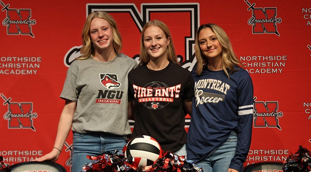Pictured above starting from left, Haley Freeman (volleyball – North Greenville), Hadley Lindnerr (volleyball – USC-Sumter) and Kelsey Wiggins (soccer – Montreat) all signed letters of intent to play in college.